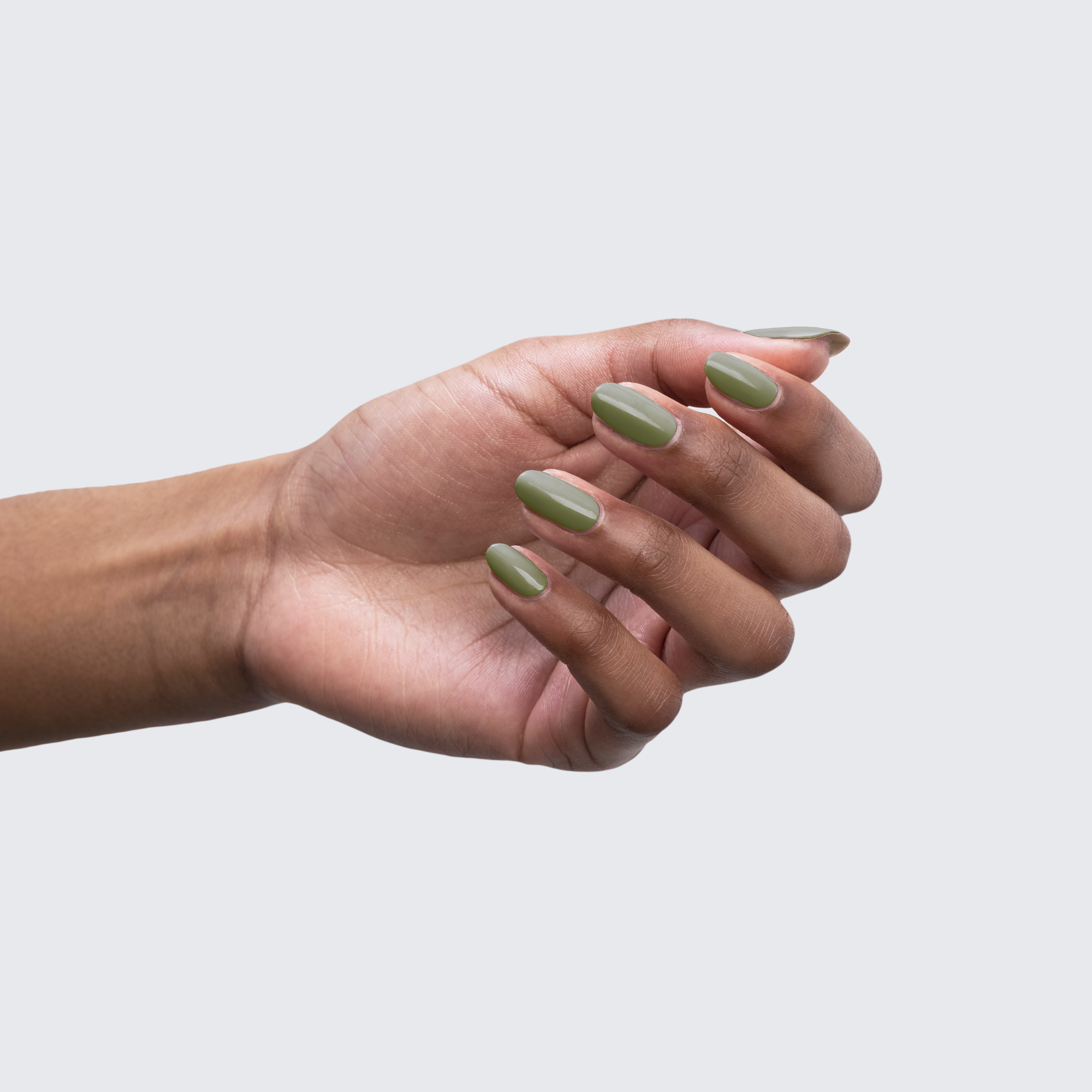 Olive green. Medium-dark. Opaque. Warm undertone.